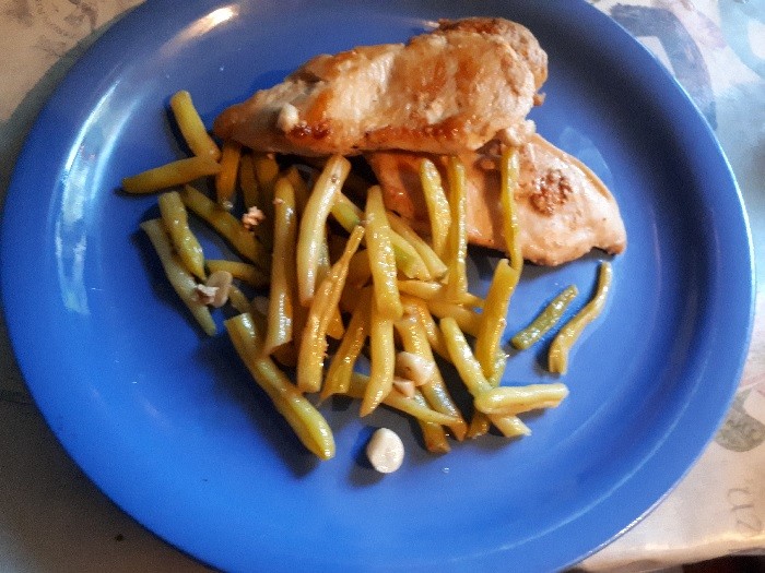 Fokhagymás zöldbab sült csirkemellel