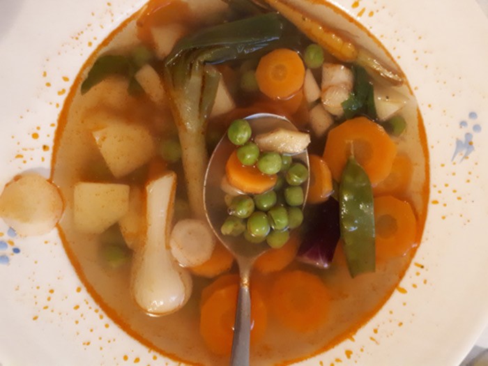 Tipp: A hagyma zöld szárával ügyesen csokorba lehet kötni a zöldségeket és ha nem szeretitek, a megfőtt levesből egyszerűen egyben kiemelheted.